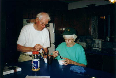 ![]() Cat Lover in San Diego Summer, 2001 ![]() Mom and Dad Canders Enjoying a midnight snack at our beach house on Fripp island. |