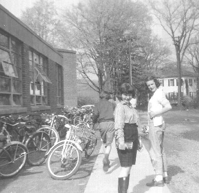 ![]() Sally with her Prom date, Bob Roberson, CV '60 ![]() Sally and Barbara Lester outside Hillcrest Elementary School c.1956 (Also in the background walking away is Mary Agnes Hazard) |