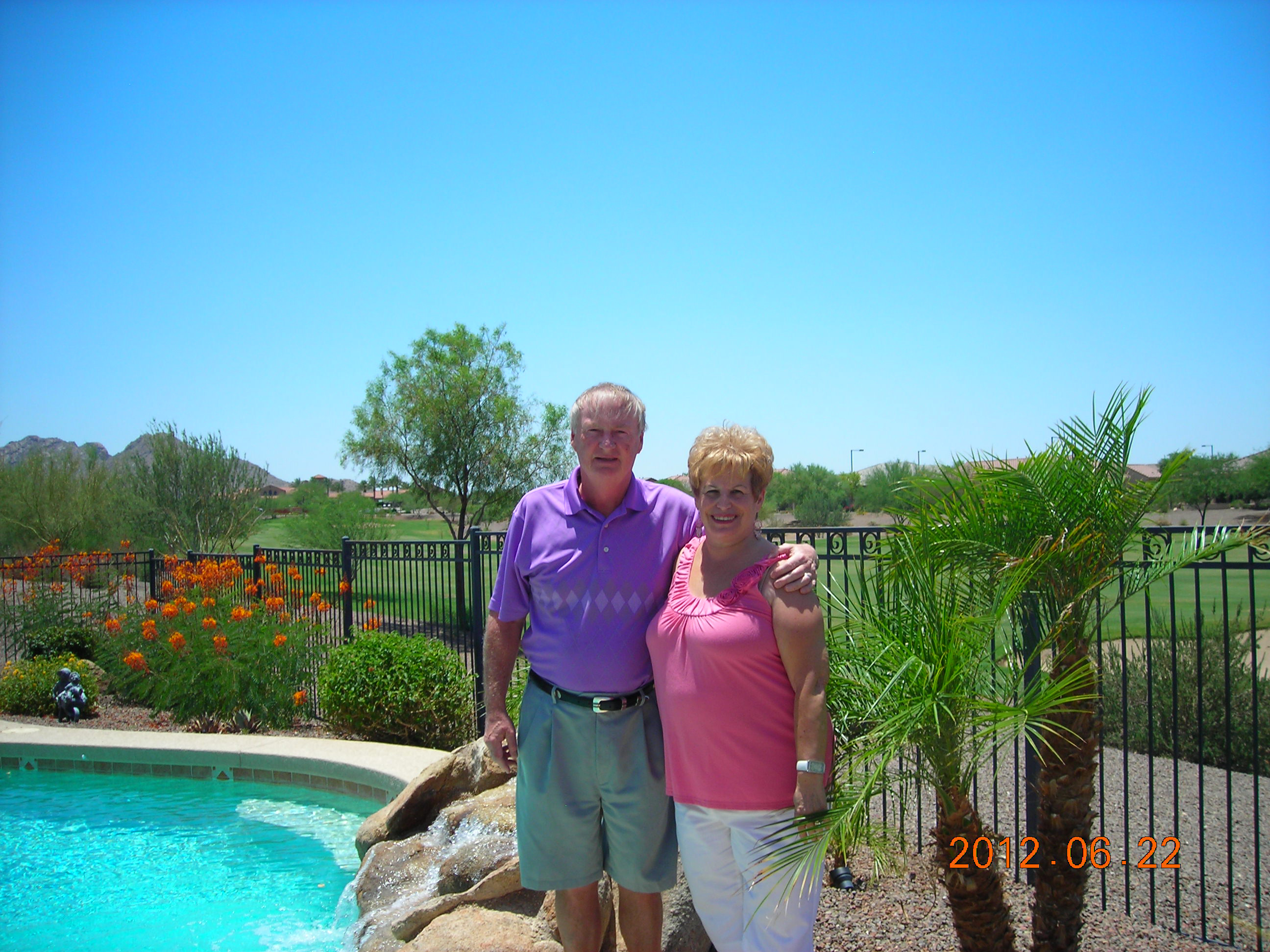 (Click for larger view) The last ten years have brought a lot of changes. In 2007, Bobbie and I picked up stakes in Michigan and relocated to Arizona, a move we had been planning for several years. We built a new house on a golf course in an active- adult community named Sun City Festival, located in Buckeye, AZ, which is 45 miles northwest of downtown Phoenix. We love Arizona and stay very active with all the amenities available to us in Festival. We are involved in many of the community activities and I golf 3-4 times a week. I am also president of the Festival Model Railroad Craft Club. Bobbie and I also volunteer at major league baseball spring training, working at the Texas Rangers and KC Royals stadium in Surprise. In the past ten years I lost both my parents, who lived near, and eventually with us, in Michigan. My Mom died in 2003 and my Dad in late 2006, at age 93 and 97 respectively. We were blessed to have them with us for so long. I also lost my only sibling, Frank(CV class of 1958) in 2009. We’re still traveling a lot, mostly throughout the west. Our next big trip will be back east and south for six weeks to attend the reunion and visit friends and relatives. |